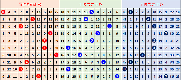 个位号码上期开极端数号码7,近十期奇偶比8:2,全体来看奇数球出号次数较多,本期暄和奇数号码热出,重脸色切号码3。
