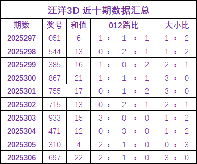 开奖归来:福彩3D开奖号为697,和值为22,其中奖号012路比为2:1:0,大小比3:0。