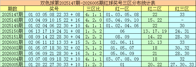 袁智囊双色球第2026006期红球三区走势分析: